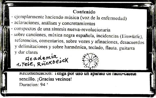 Recomendación: Utilícese un aparato de radio cassette sencillo. ¡Gracias vecinos!