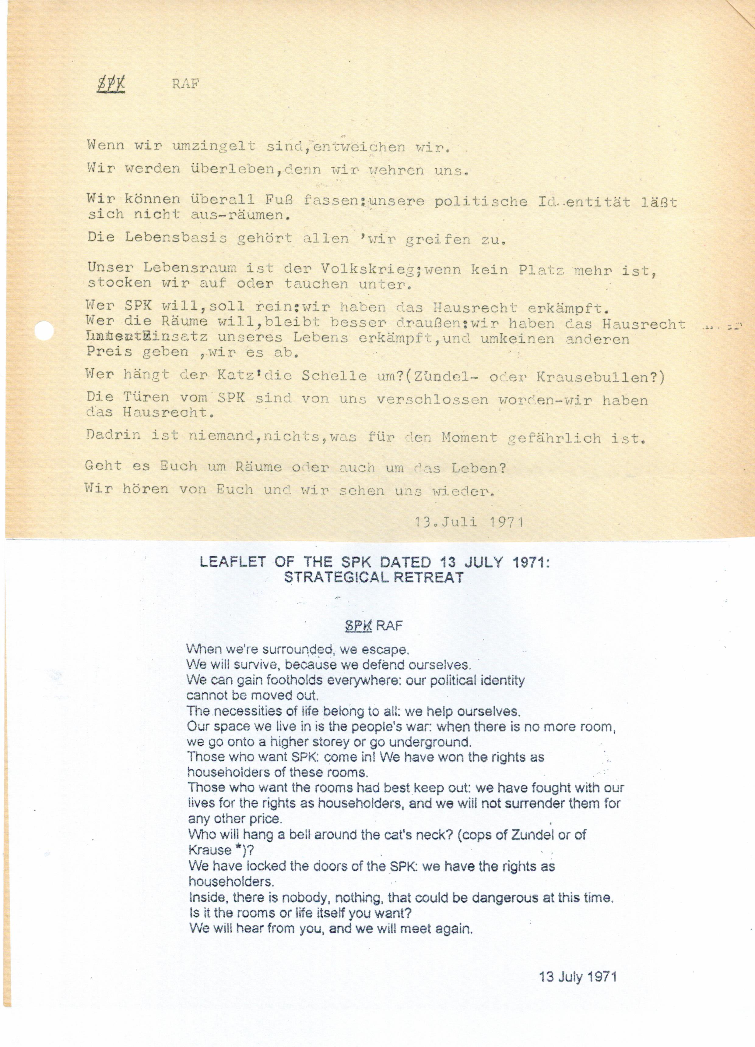 Concerning this leaflet of 13 July 1971 the author asked SPK/PF(H):