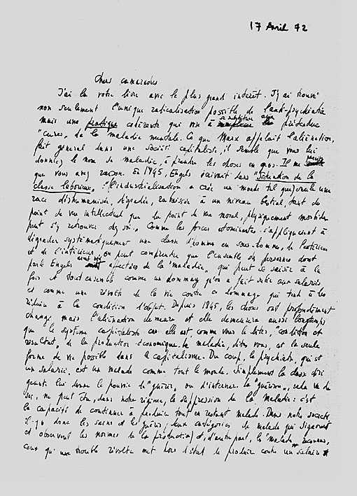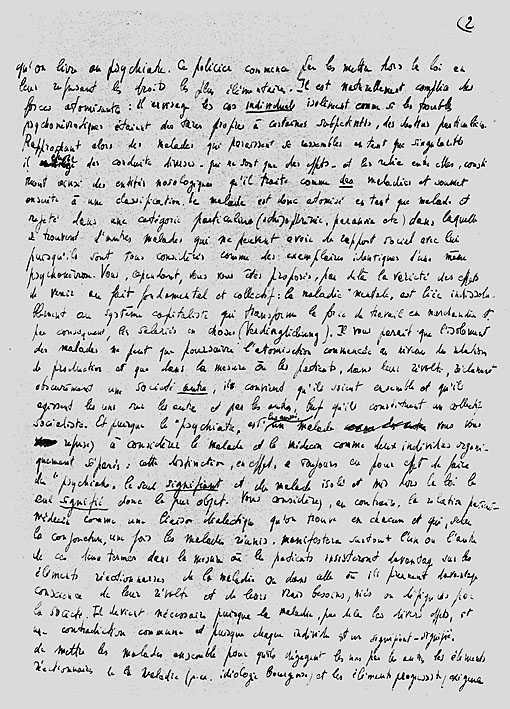 Atomize edici güçler sistematik ve sürekli olarak insanların bir sınıfını -içeriye karşı olduğu gibi dışarıya karşı da- alt-insanlar durumuna indirdiğinden, Engels'in sözettiği insanların tümünün, ücretliliğin yol açtığı ve insanı bir nesne durumuna indirgeyen hasarlar ve bu hasarlara karşı bir yaşam başkaldırısının birliği olarak tanımlanabilecek bir hastalığın etkisi altında bulundukları kolayca anlaşılabilir. 1845'den bu yana ilişkiler tümüyle değişti, ama yabancılaşma yerinde kaldı ve kapitalist sistem varoldukça da yerinde kalacak. Çünkü yabancılaşma, sizin dediğiniz gibi, üretim ilişkilerinin "koşulu ve sonucu"dur. -Diyorsunuz ki- hastalık, kapitalizm içinde biricik olası yaşam biçimidir. Aslında ücretli birisi olan psikiyatrist herbirimiz gibi bir hastadır. Egemen sınıf ona sadece "tedavi etme" ya da başkalarını kapatma iktidarını vermiştir. "Tedavi" kolayca anlaşılabileceği gibi yaşadığımız sistemde hastalığın ortadan kaldırılması anlamına gelmemektedir: "Tedavi" insanın hasta kalarak çalışma yeteneğini sürdürmesine hizmet eder. Bizim toplumumuzda bir yanda sağlıklı ve tedavi edilmiş (kendini üretim normlarına uyarlamış bilinçsiz hastaların iki çeşidi) ve öte yanda hasta olarak nitelenen, amaçsız bir başkaldırı tarafından ücretli emek sunma yeteneğini kaybetmiş ve psikiyatriste teslim edilmiş kişiler vardır. Bu polis bu kişileri onların en temel haklarını reddederek kanun dışı ilan eder. O atomize edici güçlerin açık bir eklentisidir: Bireysel vakaları yalıtılmış halde, sanki psikonörotik bozukluklar belirli bir kişiye özgü bulgular ve kişisel yazgıymış gibi ele alır. Sonra özellikleri birbirine benziyor gibi görünen hastaları birbiriyle karşılaştırır, sadece görünüşlerden ibaret olan farklı davranış biçimleri üzerinde çalışır ve onları nozolojik bütünlükler oluşturacak şekilde bir biriyle ilişkilendirir (Nozoloji= Görüngülerin mekanik tanımlanması), bu bütünlükleri farklı hastalıklar olarak ele alır ve sonra onları bir sınıflandırma olarak sunar. Hasta böylece hasta olarak atomize edilir ve belirli bir kategoriye (Şizofreni, Paranoya vb.) sokulur. Bu kategoride, aynı psikonevrozun özel örnekleri olarak kabul edildiklerinden, bu hastayla toplumsal ilişki kuramayan başka hastalar da bulunur. Sizler görünüşlerin çeşitliliği üzerinden temel ve ortak nedene ulaşmayı hedefliyorsunuz: "Akıl hastalığı" emek gücünü metaya ve sonuç olarak ücretliyi şeye dönüştüren (Şeyleşme) kapitalist sisteme kesin olarak bağlıdır. Sizin için açık ki, hastaların yalıtılması yalnızca onların köken olarak üretim ilişkilerine dayanan atomize oluşlarını devam ettirir ve hastalar kendi başkaldırıları içinde, henüz üstü örtülü olarak başka bir toplumu talep ettiği ölçüde, onların birlikte bulunmaları, birbirlerini çok yanlı olarak harekete getirmeleri, kısacası sosyalist bir kollektif kurmaları gereklidir. Ve "psikiyatrist" de bir hasta olduğuna göre, sizler hasta ve doktoru doğal olarak birbirinden ayrılmış bireyler olarak ele almayı reddediyorsunuz: Bu ayrım aslında her zaman "psikiyatrist"in biricik anlamlandırıcı (belirleyici) ve yalıtılmış, kanun dışı sayılmış hastaların da biricik anlamlandırılan (belirlenen) ve sonuçta arı nesne haline gelmesi sonucunu doğurmuştur. Buna karşı siz doktor-hasta ilişkisini herkesi kapsayan diyalektik bir bütün olarak ele alıyorsunuz. Hastalar biraraya gelir gelmez, bu diyalektik ilişkiler içinde, farklı çevrelere uygun olarak, bazen hastalığın gerici unsurlarının sürdüğü, bazen de hastaların başkaldırılarının ve toplum tarafından bastırılmış ya da çarpıtılmış gerçek ihtiyaçlarının bilincine vardıkları anlar belirleyici olacaktır. Hastalığın farklı görünüş biçimleriyle açığa çıkan genel bir çelişki olması ve her bireyin aynı zamanda hem anlamlandıran hem de anlamlandırılan olduğu bilgisinden hareketle, hastalığın gerici (örn. burjuva ideolojisi) ve ilerici momentlerini (hedefi kar değil, insan olan başka bir toplum talebi) birbirinden ayırabilmeleri için, hastaların birleşme zorunluluğu vardır. Açıktır ki bu kollektif, kapitalizm her insanda hastalık ürettiğinden ve "psikiyatrik sağaltım" yalnızca hastanın yaşadığımız topluma reintegrasyonu anlamı taşıdığından bir sağaltımı tartışmayacak, tersine hastalığı geliştirmeye, yani onu bilinç haline geliş vasıtasıyla devrimci bir güç haline getirmeye çalışacaktır.